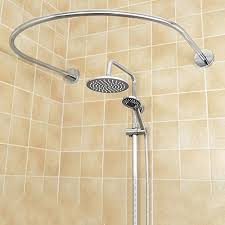 Curved shower rods are a simple way to create a more spacious, safer shower environment. Shower curtain rods come in two mounting types: Hang it from the ceiling with wire and clips, attach a curtain and have a small place at one end for an opening. Adhesive shower curtain rod u shape stainless pole holder rack easy installation. Includes rectangular flanges for support. A newly polished u shaped shower rod will brighten your bathroom. Decorative flanges #350 are available. Could not be happier with my oval shaped shower curtain rod. Oil rubbed bronze wayfair north america $ 52.71. Our curved double shower curtain rod allows use of a protective inner curtain and more decorative ou. Chrome wayfair north america $ 61.99. Brushed nickel shower rod double shower curtain rod shower rod Made by design only at.