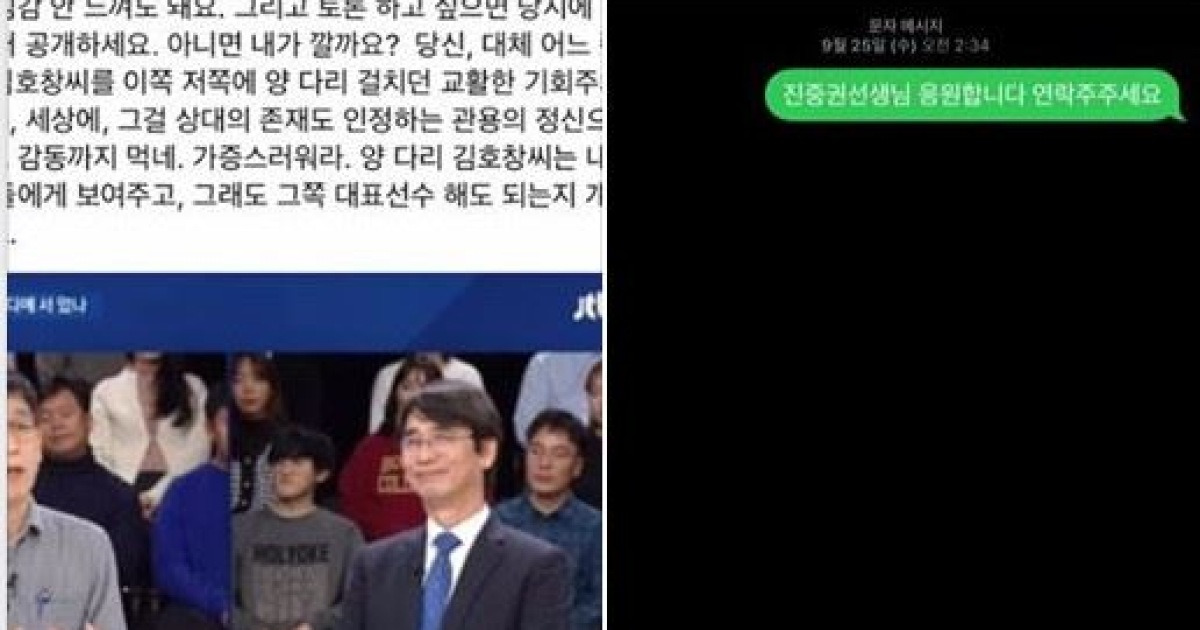김호창 페이스북 캡처 김 대표는 그런데 진 전 교수는 이것을 광신도 집단으로 폄하했다며 심한 모멸감을 느꼈고 토론을 예고한 1월31일까지 공식적인 사과를 하지 않으면 '허위사실에 의한 명예훼손' 고소장을 (토론장에) 가져가겠다고 강조했다 김호창. 하지만 진 전 교수는 같은 날 페이스북에 이 사태에서 님(김호창 대표)의 역할은 거의 없다.